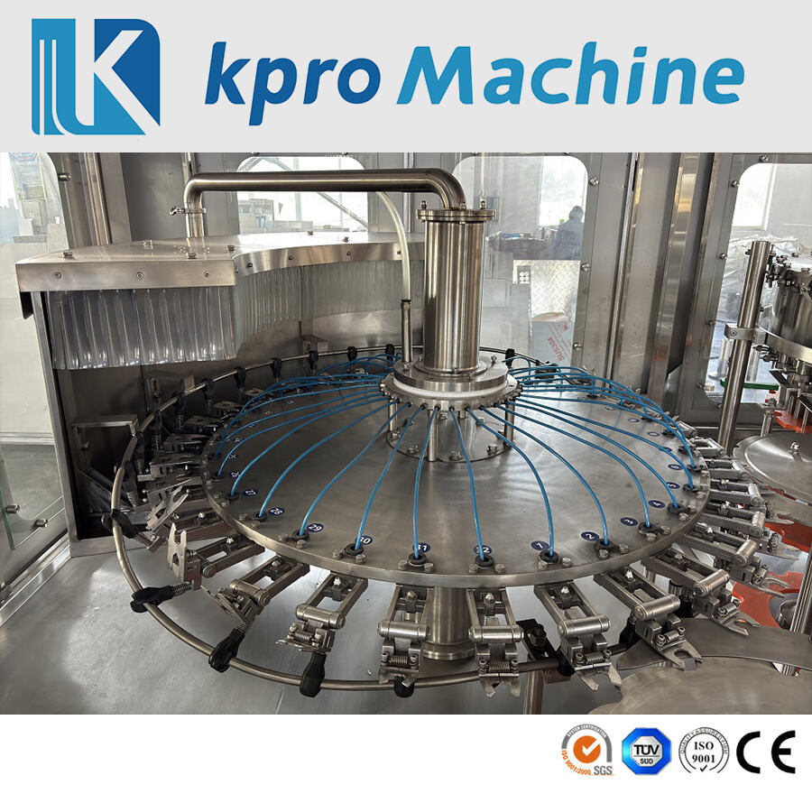 The machine is designed for filling and sealing carbonated drinks, craft beer, and other beverages in PET bottles, PLA bottles, and glass bottles in the beverage industry. The filling and sealing processes are integrated into one design, and the principle of equal pressure filling is used.